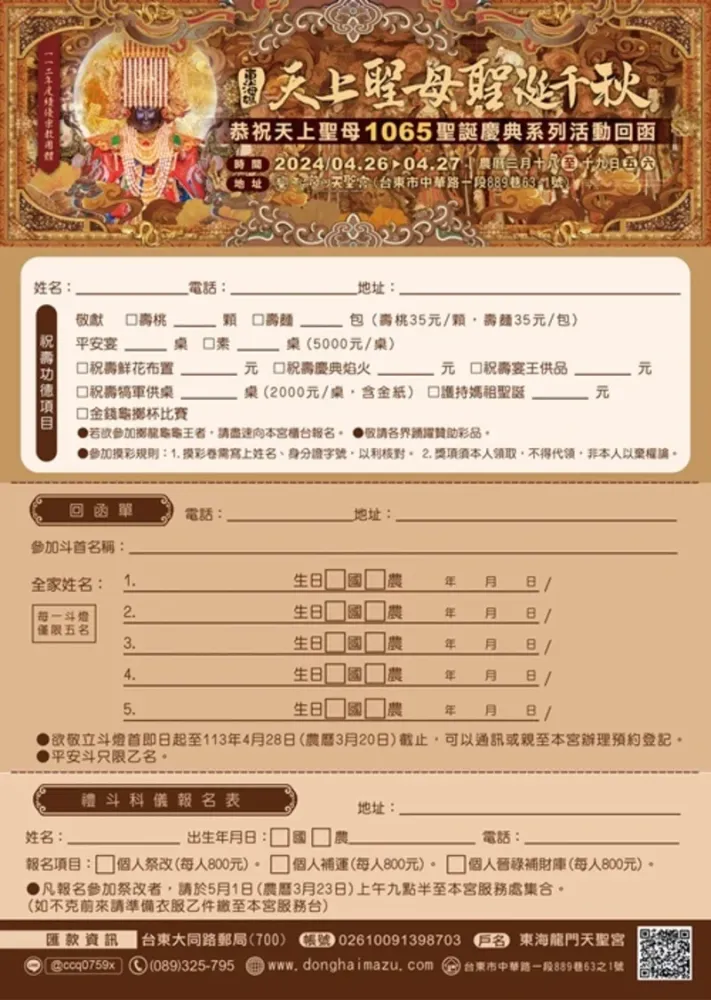 【2024東海龍門天聖宮『甲辰年天上聖母聖誕朝真禮斗大法會』七星糧禮斗 之 特色財神斗】
