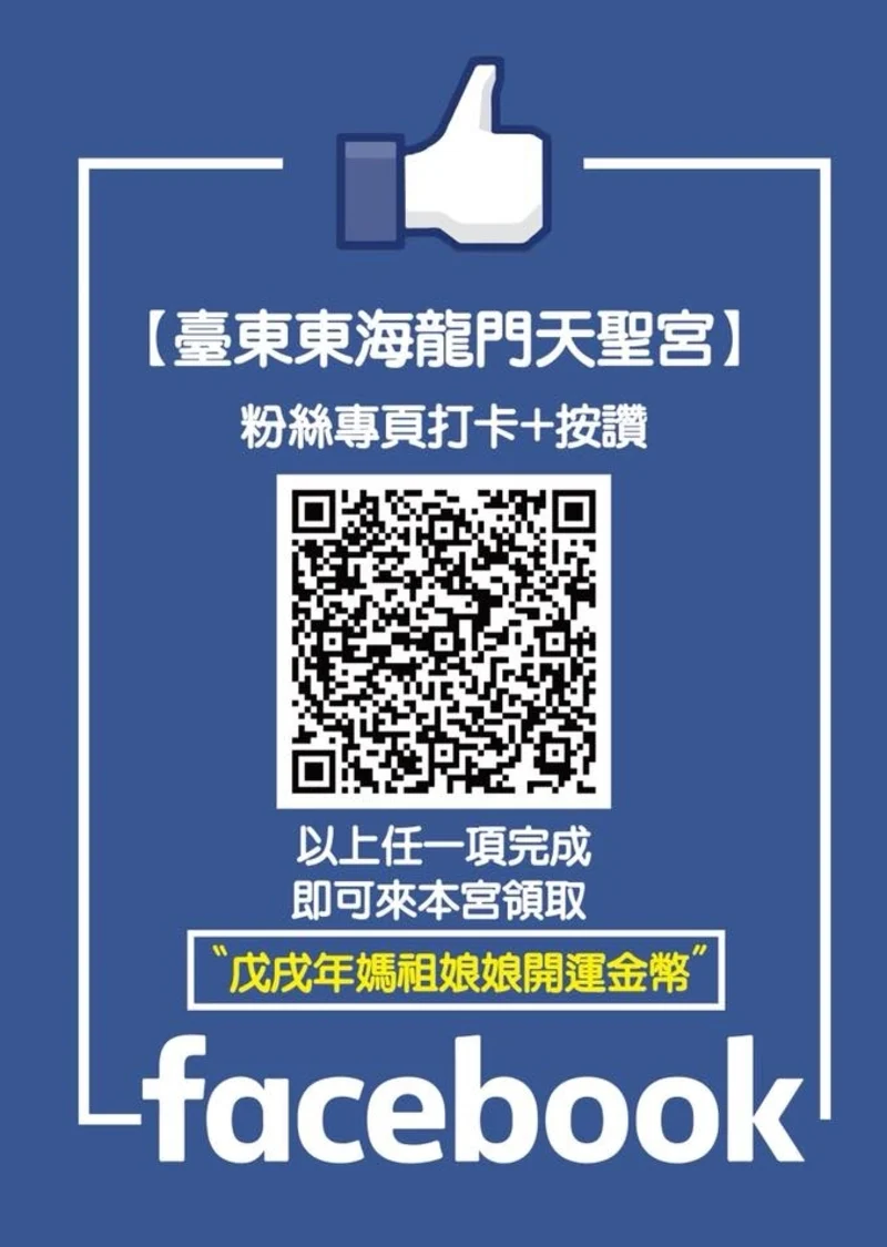 東海龍門天聖宮有新設 LINE@ 的官網,舉凡住宿或是任何相關問題,都可以透 LINE@ 的官網直接互動詢問喔,想得到媽祖開運金幣的請趕快加入,送完就截止了。凡加入 LINE 官網,或在臉書打卡或按讚者,以上任一項皆可獲得媽祖開運金幣。
