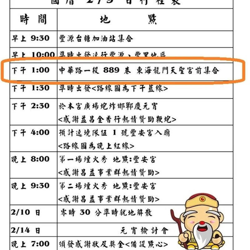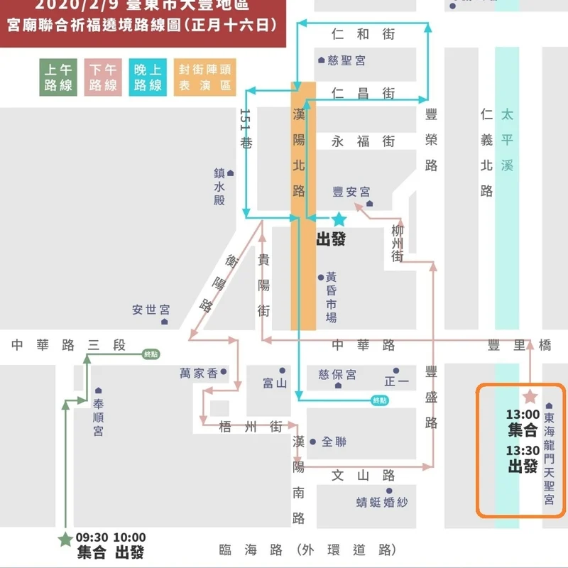◎遶境地區:台東大豐地區『豐榮、豐谷、豐里、豐原』。