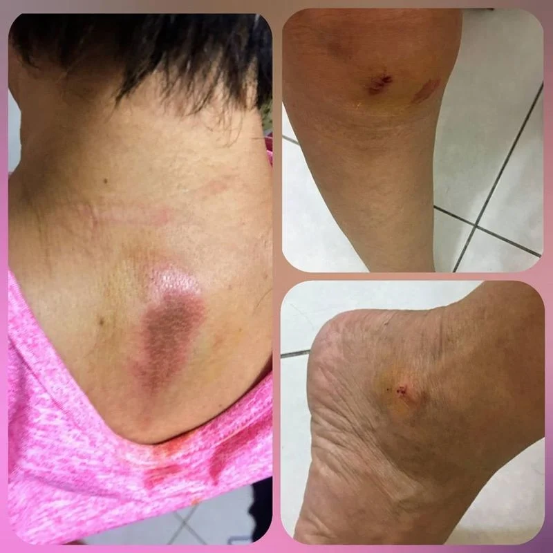 感謝媽祖媽媽的保祐,我受傷的部位只有右腳、右膝蓋、頸部輕微擦傷,早上醒來只有背部平躺撞擊的部位輕微疼痛。