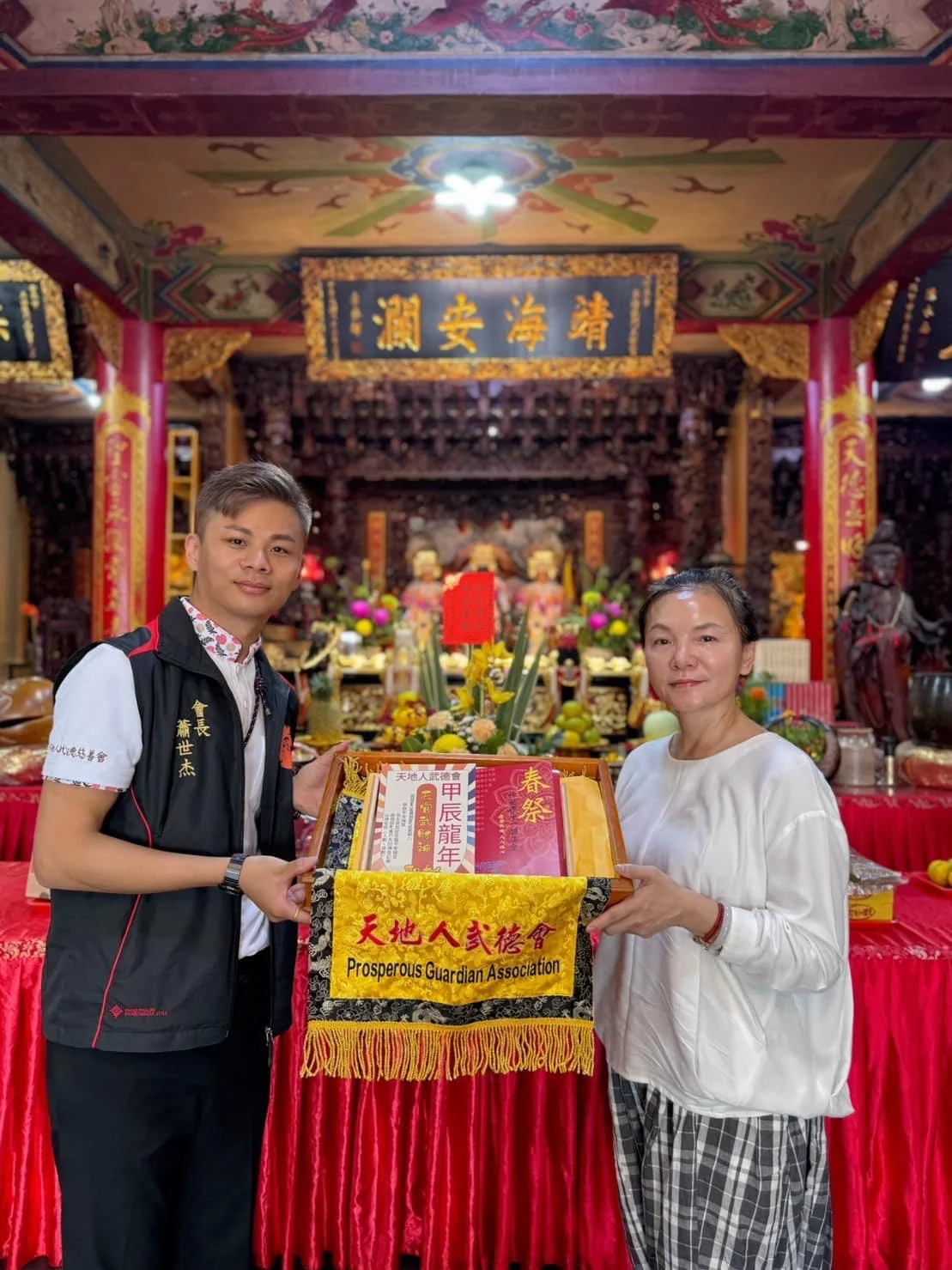 屏東 天地人武德會發揚天官武財神慈悲精神,定於明春2024年舉辦『#甲辰龍年春祭祈安禮斗一朝法會』,日前由蕭世杰會長率領會中幹部,虔備『帖至誠迎』禮帖、鮮花、鮮果、供品…等,回到祖廟 #東海龍門天聖宮 至誠恭請 #天上聖母 #東海媽祖 前往鑑壇,將與已賜7聖杯恩允要前往護壇的『 府城武德武財會– #天官武財神』及各方眾神神庥廣披、一同護持法會圓滿。