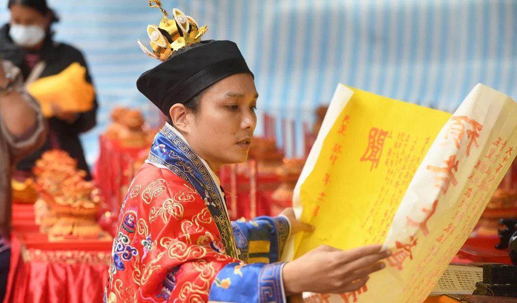 東海龍門天聖宮的法會和科儀,依循道藏、如法執行,總是大大地吸睛、並引起相當討論度和共鳴!這場60年一次『雙祿回頭天赦日』,報名者眾,東海龍門天聖宮也做了彌足的準備!道團在前一天駐站,調和唱韻;主法高功理丞道長並在12月31日跨年夜當晚,伏俯案前,虔誦玉皇本行集經。元旦天赦日一早,東海龍門天聖宮宮主陳柔嫻 與 理丞道長 並一同前往 台東凌霄寶殿,進行 全台灣最早場的天赦日祈福儀式!道長帶著三百多人在今年許下願望的疏文、備齊108朵蓮花,在破曉時分06:36正式開始『接氣儀式』,每一張湛黃色的疏文,透過道長的讀誦與加持,化成一句句虔誠的話語,隨香煙飄裊而升。