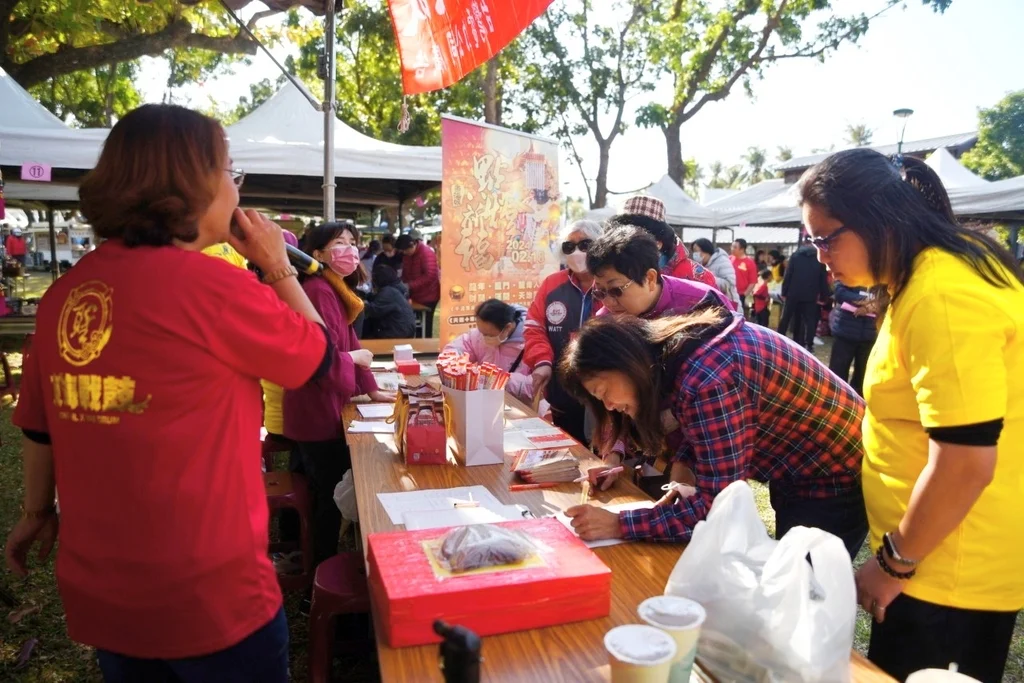東海龍門天聖宮每年一創新,今年試圖把『行動服務台』搬到戶外,讓宮廟櫃台能在活動現場第一線接觸尚且未能走進廟門的人,點燈、填表、選贈品…,讓民眾在活動場仍可『一站式』完成,還可享有活動現場報名限量紀念品;但凡小小體貼,都是希望日子能更優化,讓愛成為世間的樣子。