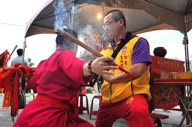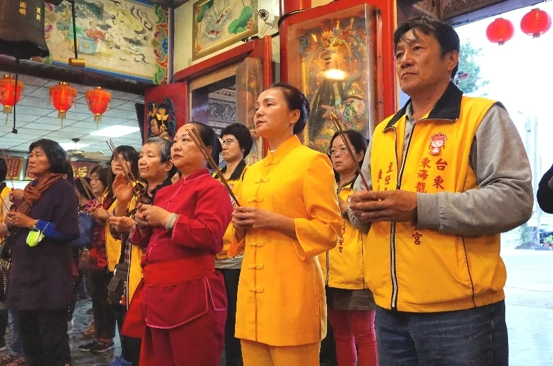 本宮由主任委員陳錦鋒和宮主陳柔嫻帶領,於三月三日至五日展開為期三天兩夜的丁酉年南部祈安巡禮交誼聖會,沿途參訪屏東龍峰山無極殿、高雄大寮無極靜靈宮、高雄左營天府宮、台南無極代天府、台南西台慈惠堂、台南北海宮,最後至台南鹿耳門天后宮祖廟謁祖刈香。本日傍晚參香團平安返抵台東,隨即舉行簡單隆重的接駕安座儀式。