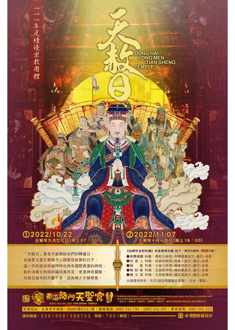2022壬寅年『天赦日』 #秋季第二場 & #冬季第一場 (同時開放報名) 活動日期:國曆111.10.22(六) 早上07:00、國曆111.11.07(一) 晚上07:00